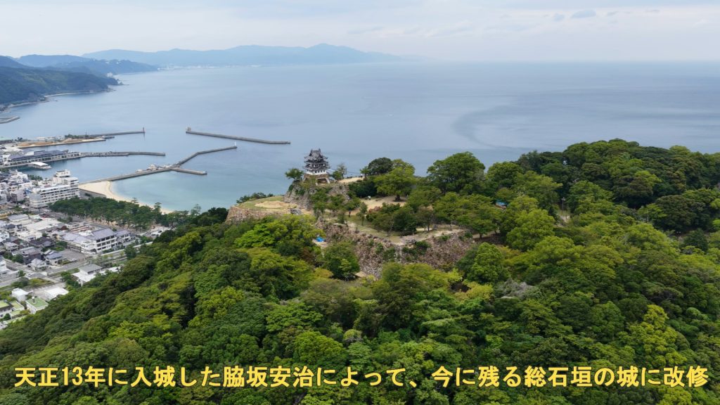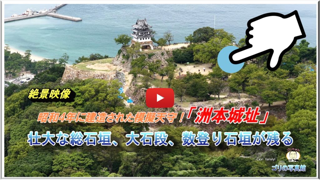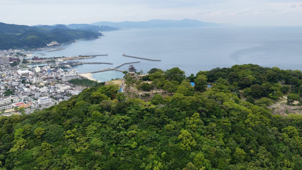 天守のある山頂から、洲本市を見下ろす映像は迫力がありますので、ぜひ見てください。