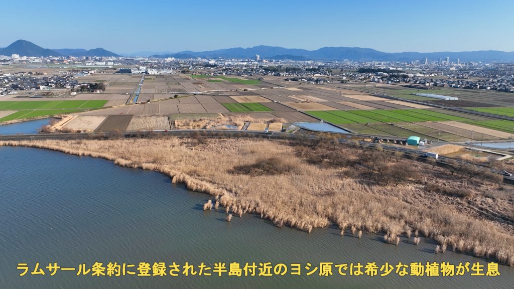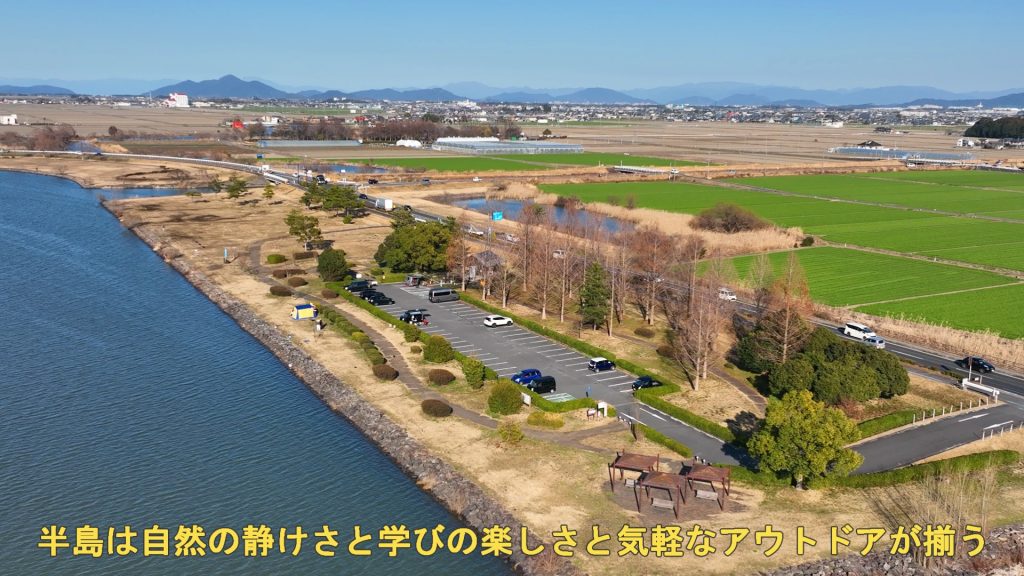 湖に突き出た烏丸半島は、自然保全・学習・レジャーが融合したエリア!(ドローン空撮・4k動画)