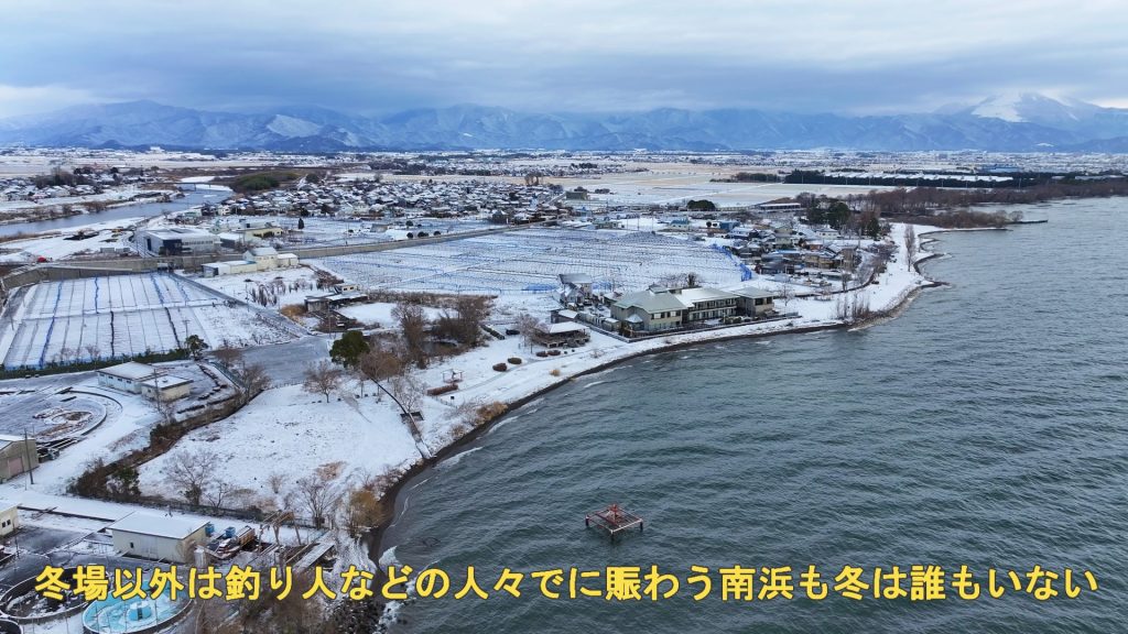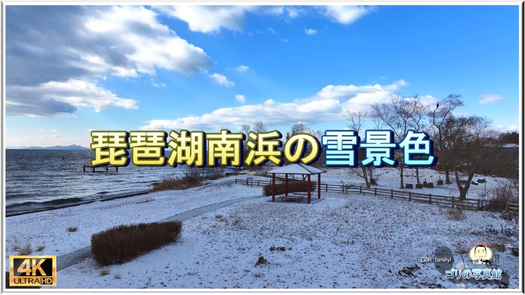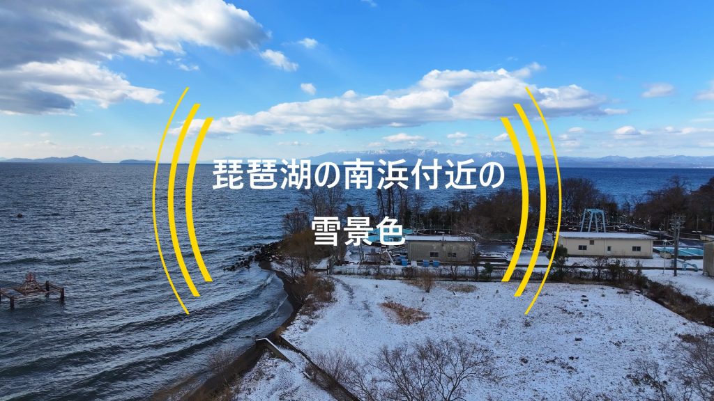 琵琶湖の素朴な湖岸が続く南浜地先の雪景色!(ドローン空撮・4K動画)